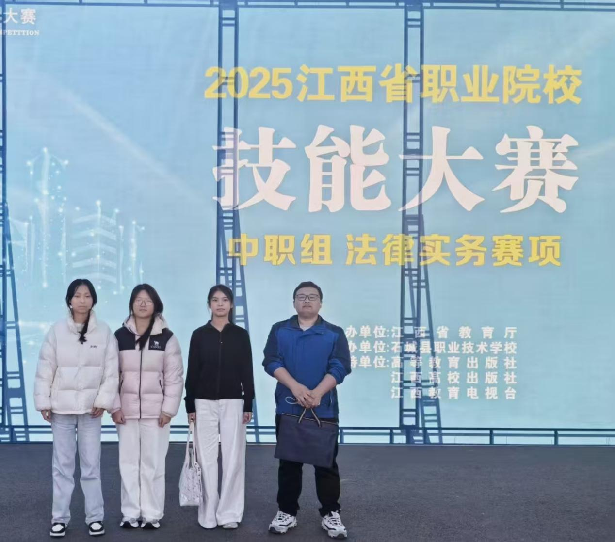 2025 年江西省职业院校技能大赛中职组 “法律实务” 赛项圆满落幕。在学院领导的高度重视与大力支持下,现代服务分院学子首次亮相该赛项,派出由 24 计算机应用三班肖语婷、24 计算机应用二班刘芳菲、25 级电子商务高技 3 班胡妍组成的参赛队伍赴赛,在陈翀、郑森老师的悉心指导下,与全省多所职业院校的优秀选手同台竞技、激烈角逐。